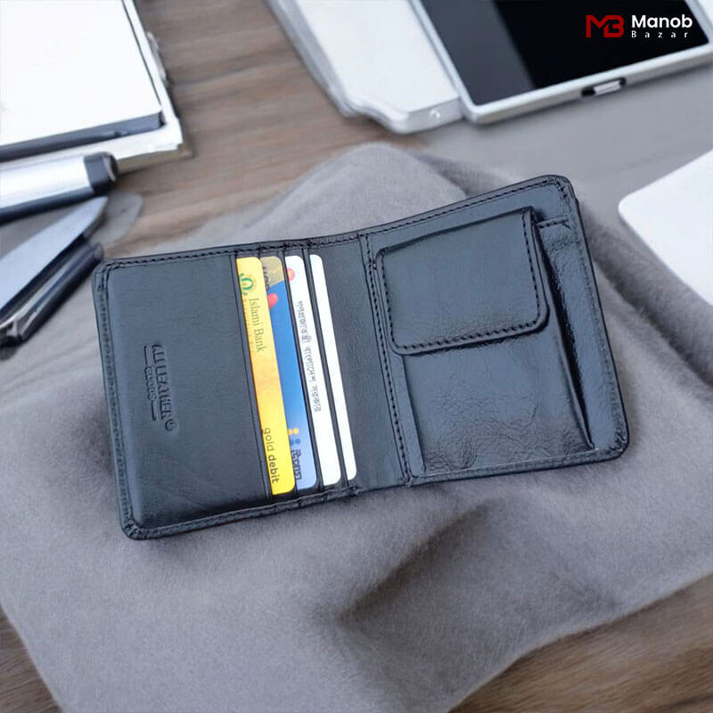 ➡️ ডিপার্টমেন্ট: ৪টি কার্ড স্লট, ১টা লুকানো পকেট, ২টি ক্যাশ চেম্বার এবং ১টি কয়েন পকেট।